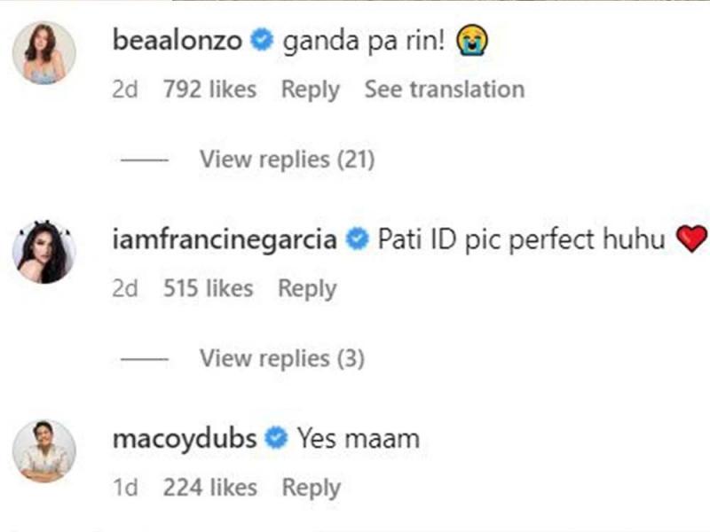 Gayundin si Francine Garcia na nagkomento, "Pati ID pic perfect huhu [heart emoji]."