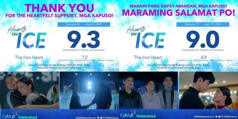 Nakapagtala ng 9.3 percent ang episode 18 ng Hearts On Ice na umere noong April 5, habang nakakuha naman ng 9.0 percent ang episode 19, base sa NUTAM People Ratings ng pinagkakatiwalaang market research firm na Nielsen Philippines.