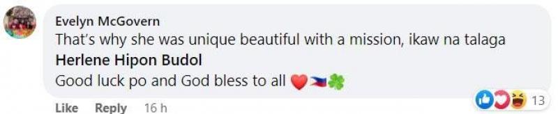 "That's why she was unique beautiful with a mission, ikaw na talaga Herlene Hipon Budol. Good luck po and God bless to all," komento ng isang netizen.