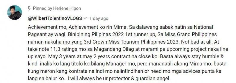 Nag-iwan naman ng comment si Wilbert sa vlog na ipinost ni Herlene.