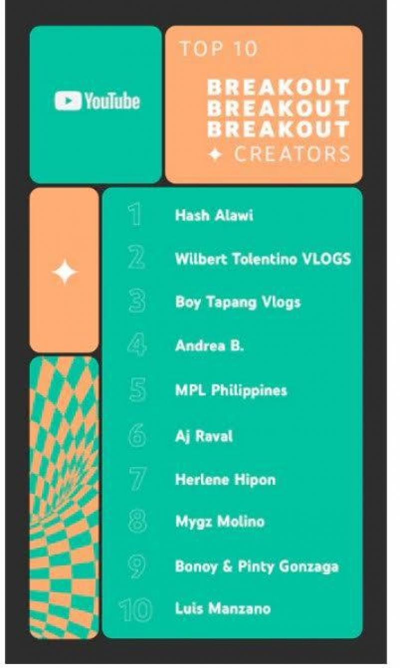 Herlene landed in the seventh spot and joined other fellow creators like Hash Alawi, Luis Manzano, and the parents of Toni and Alex Gonzaga--Bonoy and Pinty in the list of Breakout Creators this year.