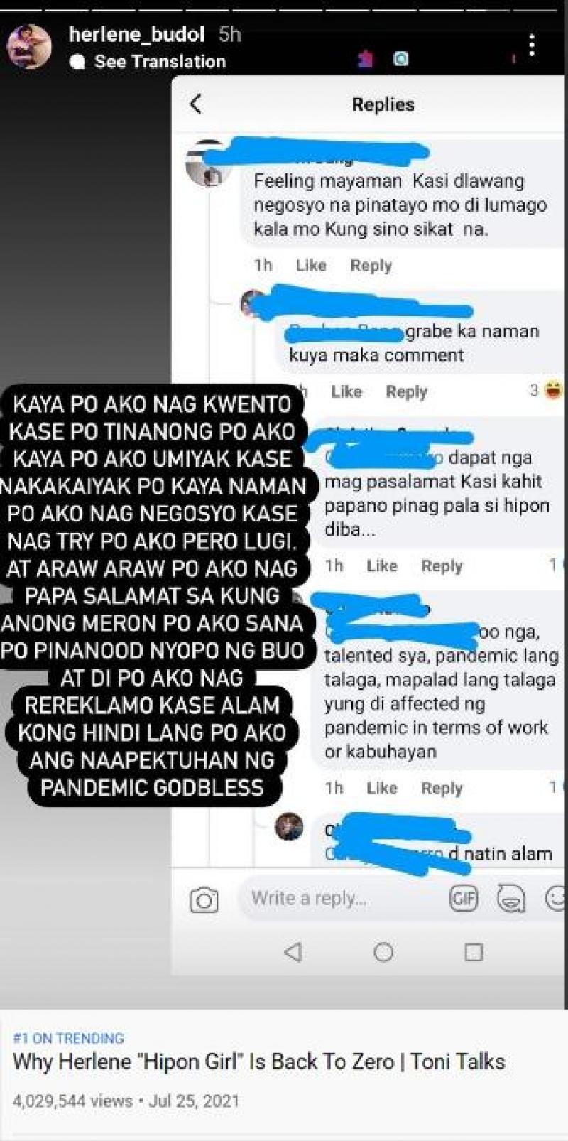 Matapang na pahayag ni Herlene, “Sana po pinapanood n'yo po ng buo at di po ako nagrereklamo kase alam kong hindi lang po ako ang naapektuhan ng pandemic God bless.