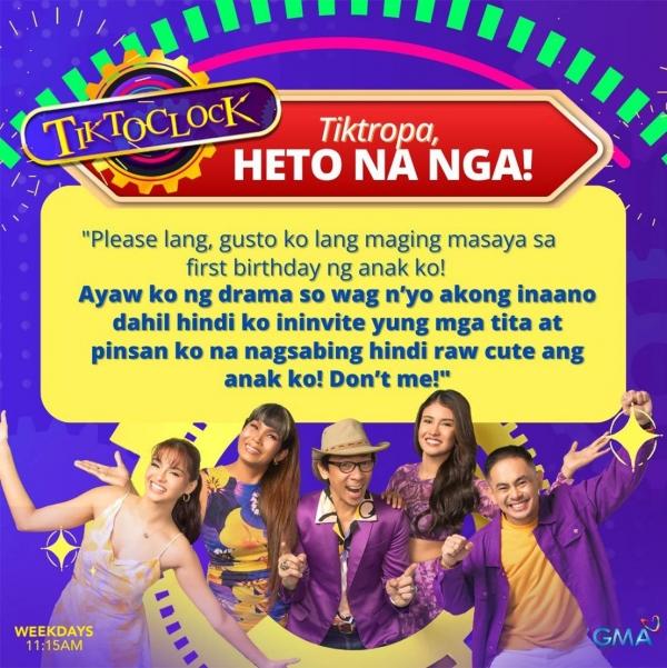 Huwag magpahuli sa mga maiinit na sitwasyong pag-uusapan sa TiktoClock! Abangan ito at sumali sa pagsagot sa "Heto na Nga" ng TiktoClock, Lunes hanggang Biyernes, 11:15 am sa GMA Network.