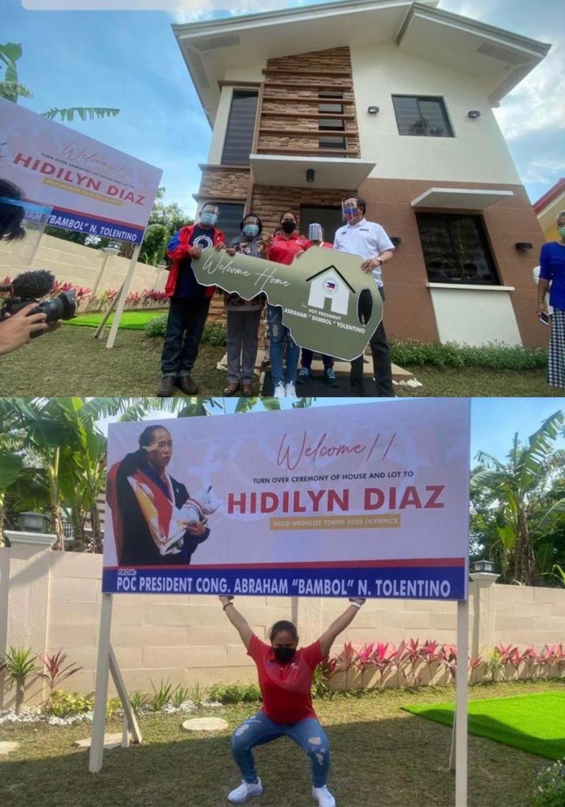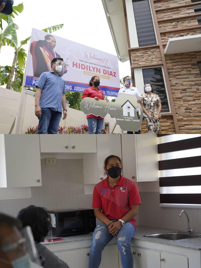 Hidilyn Diaz, the lone Pinoy athlete who brought home an Olympic gold medal from the Tokyo 2020 Olympic Games, has received the keys to her brand new 2-story home in Tagaytay City, a "reward" from the Philippine Olympic Committee.