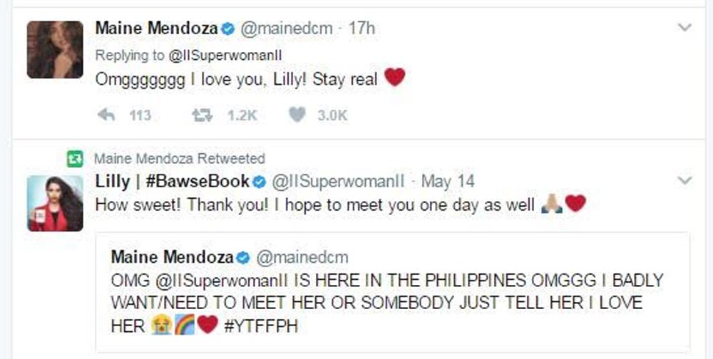 The AlDub superstar learned that Lilly Singh is in Manila and tweeted that she wants to meet her. The latter saw Maine’s tweet and replied to the Eat Bulaga host.