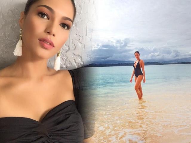 Makikita sa Instagram post ni HBD girl na suot niya ang sexy black one-piece bikini habang nagpo-pose sa white sand beach ng Daku Island.