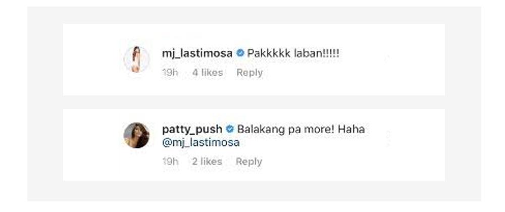 Humanga din sa mga sexy photos ni Patricia ang 2014 Miss Universe Philippines na si MJ Lastimosa na nag-comment sa Instagram post ng Eat Bulaga host.