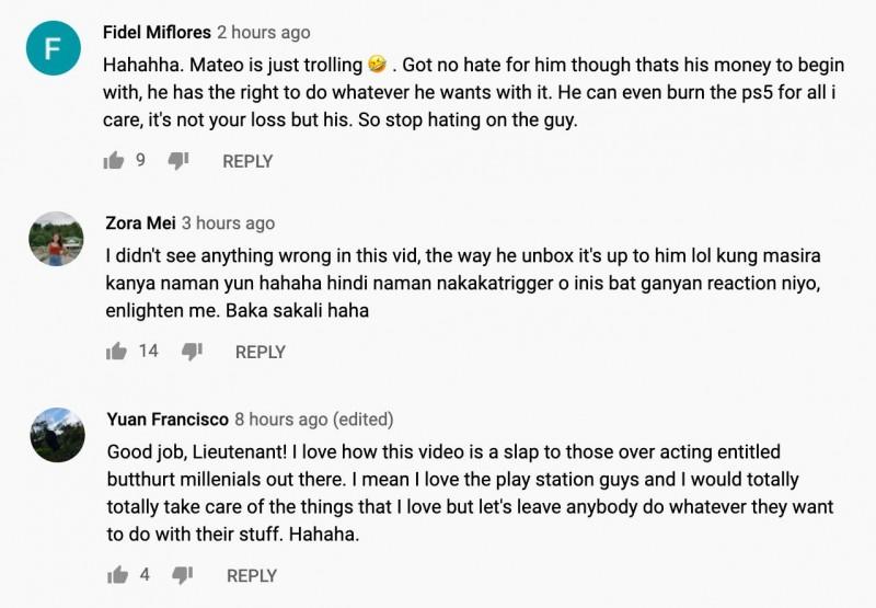 Meanwhile, another wrote, “I didn't see anything wrong in this video. The way he unboxes, it's up to him. Lol. Kung masira, kanya naman 'yun. Hindi naman nakaka-trigger o nakakainis. Bakit ganyan reaction n'yo. Enlighten me, baka sakali.”
