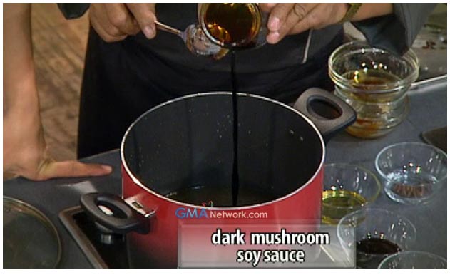 1. In a stockpot, boil chicken stock, oyster sauce, dark soy sauce, salt, white pepper, white sugar, star anise, five spice powder, and hoisin sauce.
