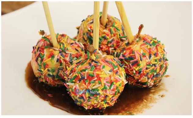 How to make Apple Dipped in Caramel Sauce with Candy Sprinkles