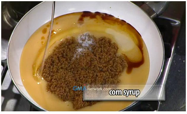 1. Combine brown sugar, butter, condensed milk, corn syrup, vanilla extract, molasses, and salt.