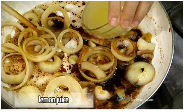 4. Pour-in the soy sauce, water, and lemon juice. Stir.