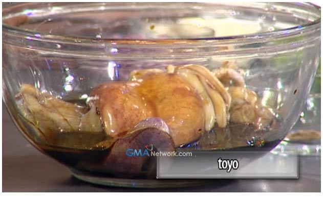 6. Marinate the squid in soy sauce, sugar, salt, black pepper and calamansi juice.