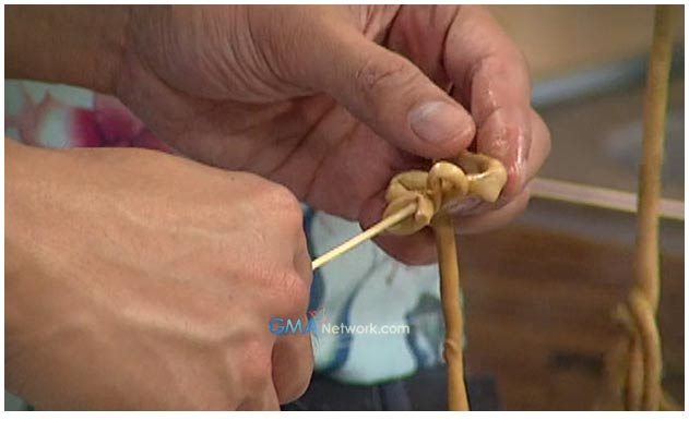 2. Allow to cool before skewering it on bamboo sticks.