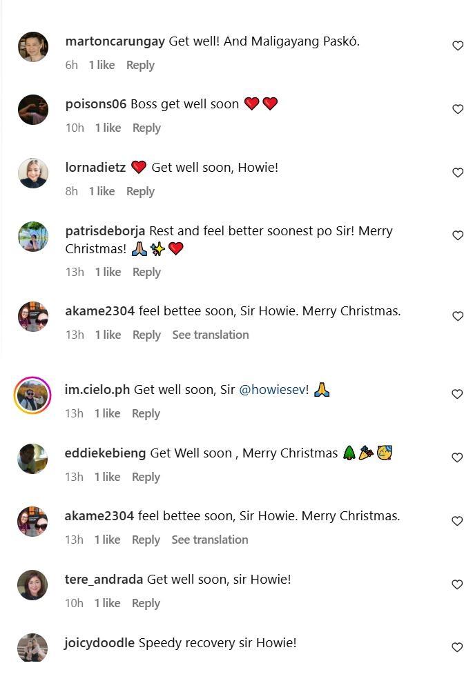 Several netizens also reacted to Howie's hospital update, wishing him a speedy recovery.