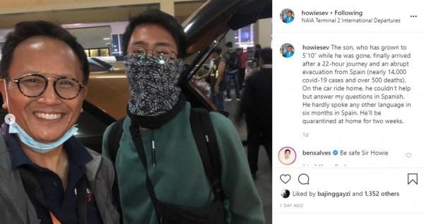 Howie Severino's son Alon will undergo quarantine after returning home from Spain amidst the COVID-19 pandemic.