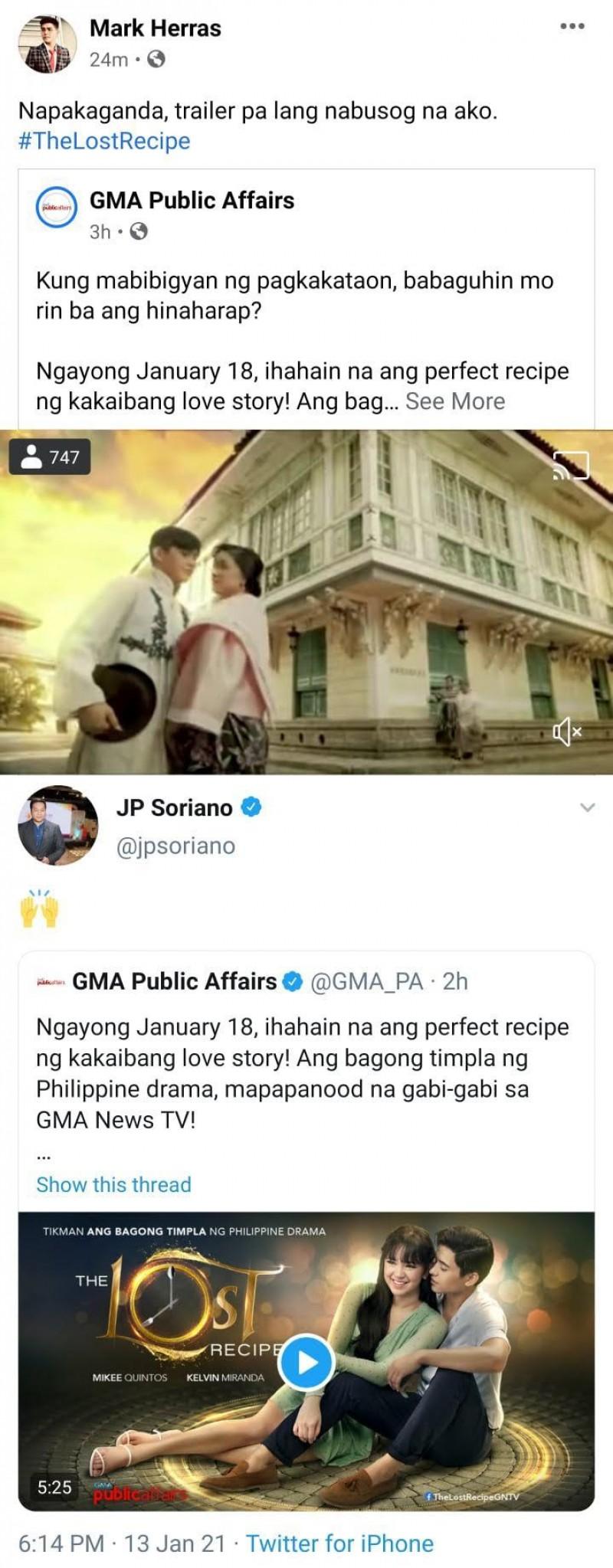 Sa post ni Mikee ng full trailer ng The Lost Recipe ay na-excite rin ang ilan sa kanyang mga kaibigan at mga naging katrabaho sa industriya.