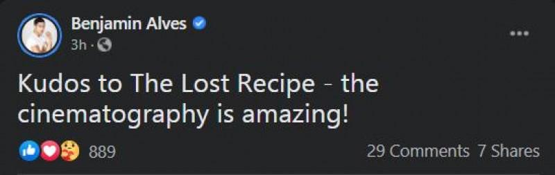 Cinematography naman ang hinangaan ni Benjamin. Saad ng aktor, “Kudos to The Lost Recipe--the cinematography is amazing."