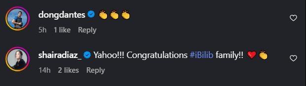 Nagbigay rin ng kanyang congratulatory message ang Kapuso Sweetheart at co-host ni Chris na si Shaira Diaz sa kanilang iBilib family sa comments section.
