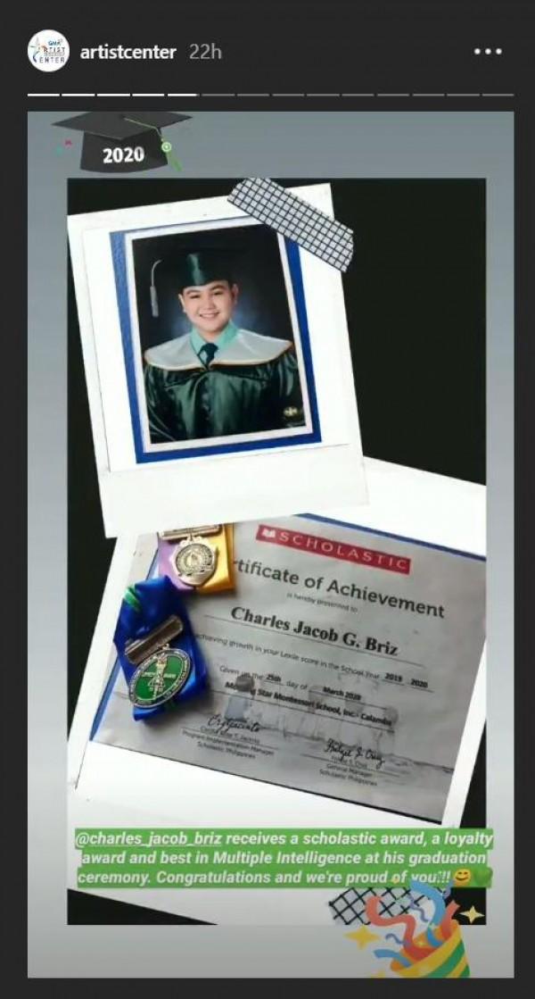 Sa Instagram post ng GMA Artist Center talent, nakamit ni Charles ang scholastic award, loyalty award, at best in multiple intelligence sa pagtatapos niya.