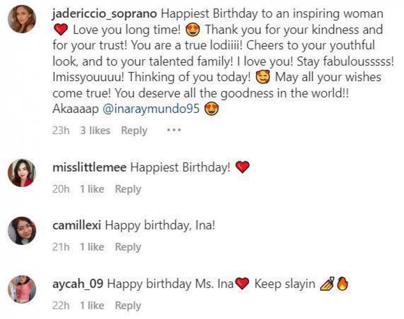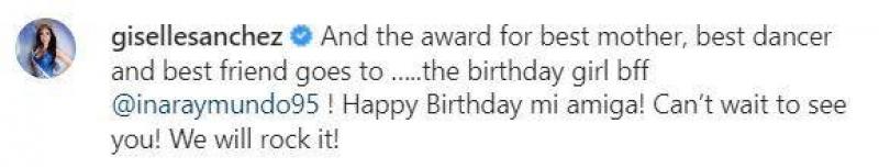 Ina's best friend and actress Giselle Sanchez was the first one who greeted her in the comments section.