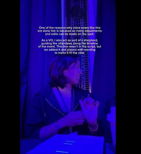 In her Facebook video, the viral voice artist explained the reason why voice overs are done live.