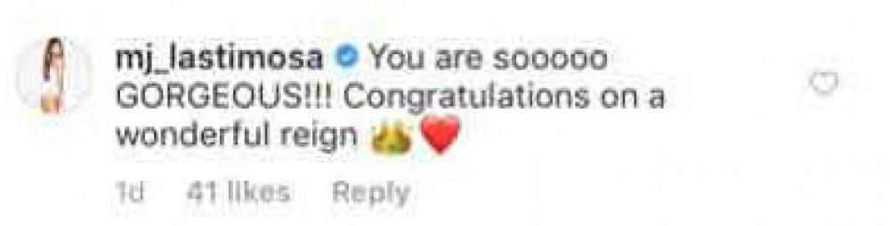 Meanwhile, Miss Universe Philippines 2014 MJ Lastimosa also congratulated Iris Mittenaere for a wonderful reign.