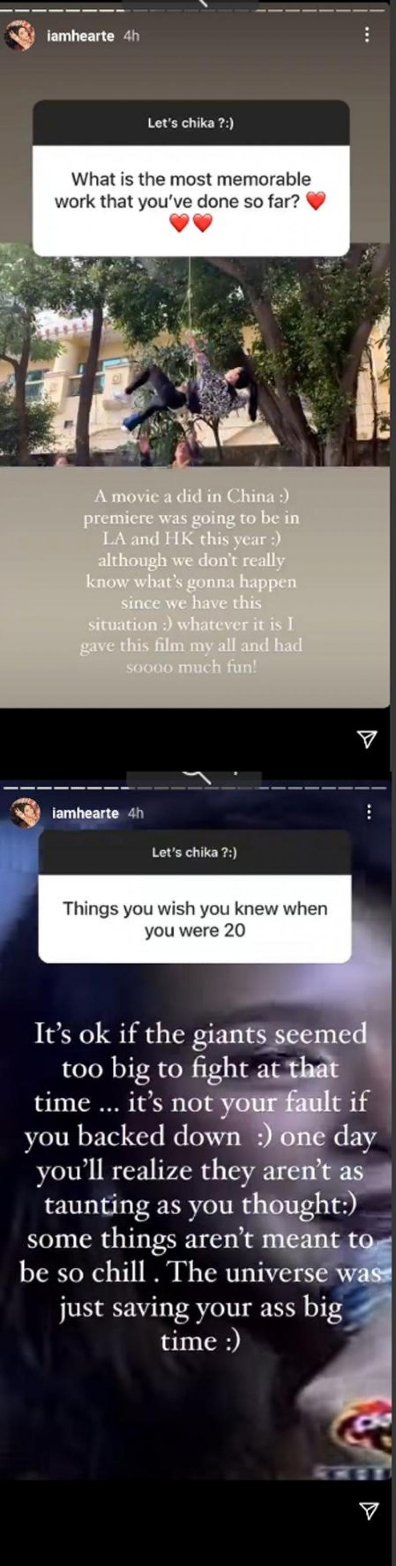 Moreover, Heart revealed that the movie project she did in China was among the most memorable ones she has ever done in her life. She also hinted that the film's premiere might happen this year.