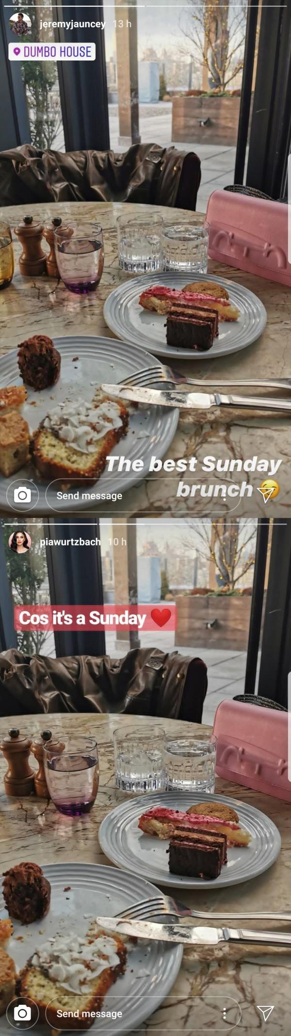 On Instagram Story early Monday (Sunday, New York time), Pia and Jeremy have shared the same photos while having brunch in Dumbo House in Brooklyn, New York.
