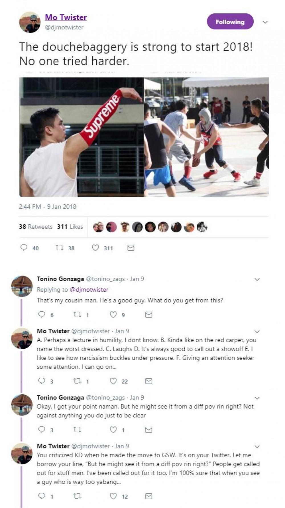 Several social media posts of DJ Mo Twister directed at Kapamilya sportscaster Anton Roxas got the Internet abuzz.