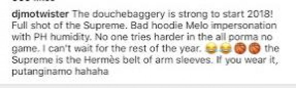 In a tweet last January 9, DJ Mo posted some photos of Anton while playing basketball with the following caption, “The douchebaggery is strong to start 2018! No one tried harder.”