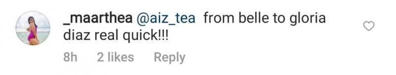 One of her friends commented, “from belle to gloria diaz real quick!!”