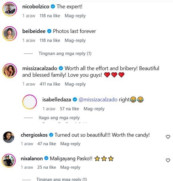 Fellow mom Iza Calzado reacted to Isabelle's funny post saying, “Worth all the effort and bribery! Beautiful and blessed family! Love you guys!”