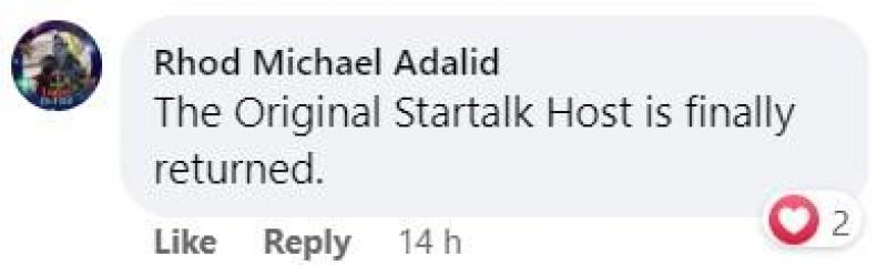 Ayon sa isang netizen, “The Original Startalk Host is finally returned.”