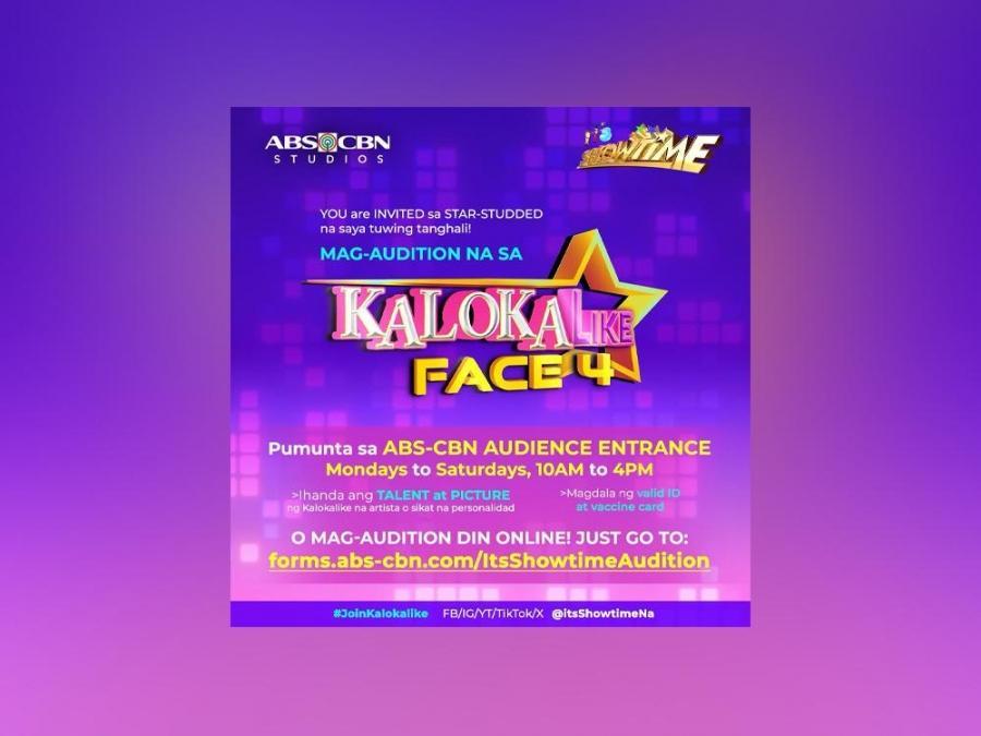 Kamakailan ay ibinahagi ng It's Showtime ang isang larawan kung saan makikita ang mga detalye para sa auditions ng “Kalokalike Face 4.”