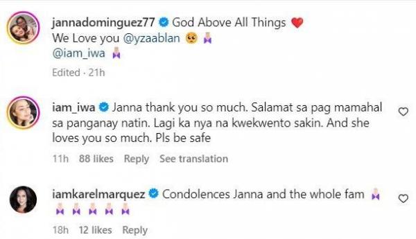 Iwa replied to the Pepito Manaloto actress' post saying, “Janna thank you so much. Salamat sa pag mamahal sa panganay natin. Lagi ka nya na kwekwento sakin. And she loves you so much. Pls be safe."