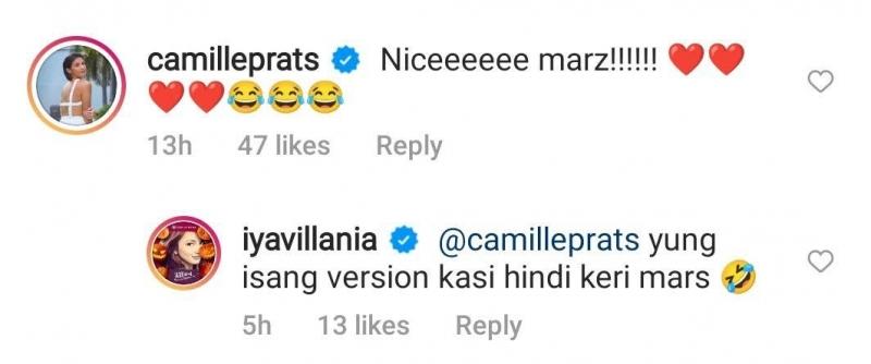 Iya's Mars Pa More co-host Camille Prats left a comment on the post and wrote, “Niceeeee marz!!!!”
