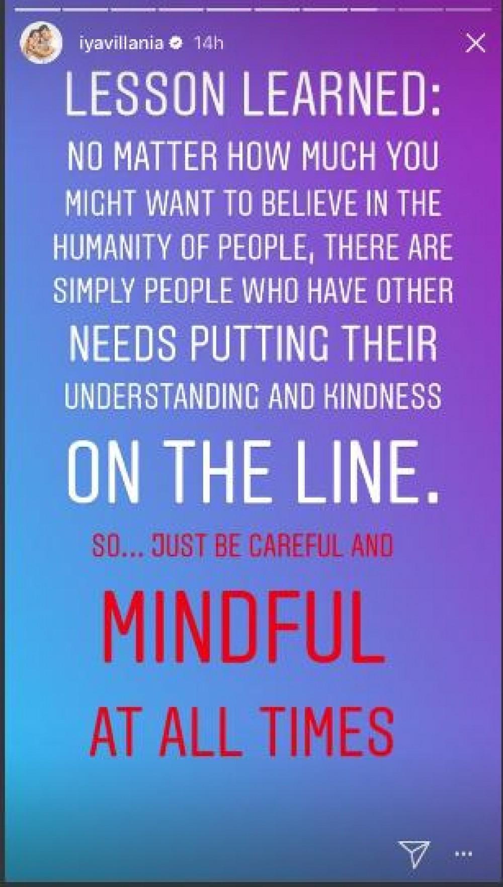Naglabas din ng saloobin si Iya sa kaniyang Instagram Stories kung saan nagpaalala siya na dobleng mag-ingat lalo na sa mga matataong lugar.