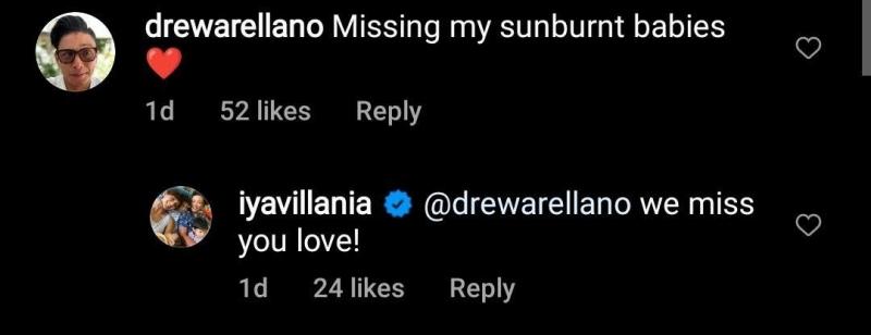 In the comments section, Iya's husband, Drew Arellano, expressed how much he misses his little ones, saying, “Missing my sunburnt babies.”