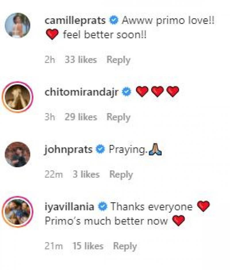 Friends and fans of Iya expressed their concern for Primo on the comment section. The TV host, on the other hand, assured everyone that "Primo's much better now."