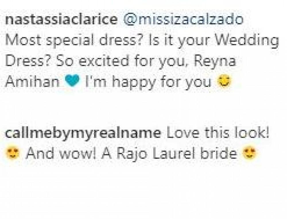 Bride-to-be Iza Calzado posted a throwback photo of her wearing a gold gown designed by her friend Rajo Laurel. She captioned it with, “Rajo, you are a genius! I can't wait for you to make my most special dress! #rajoxxv"