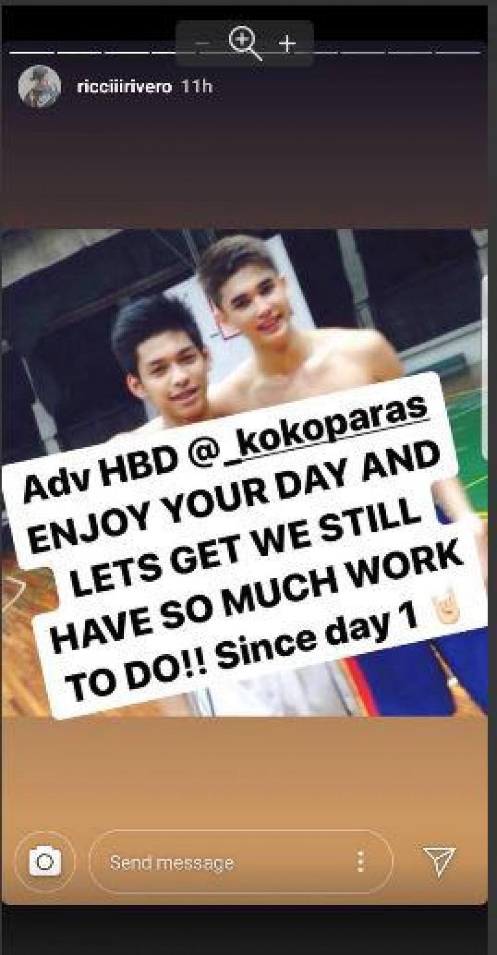 Meanwhile his UP Fighting Maroon teammate, Ricci Rivero, also greeted him via Instagram Story.