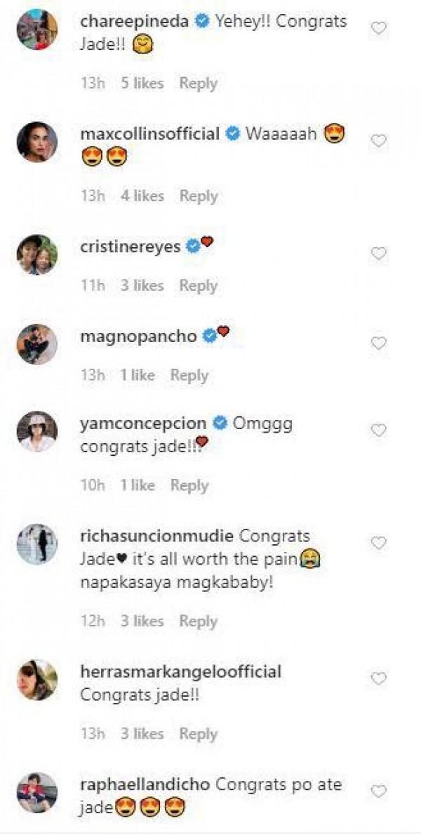 Meanwhile, celebrity friends including Charee Pineda, Max Collins and Pancho Magno, Cristine Reyes, and Rich Asuncion congratulated Jade in the comments section.