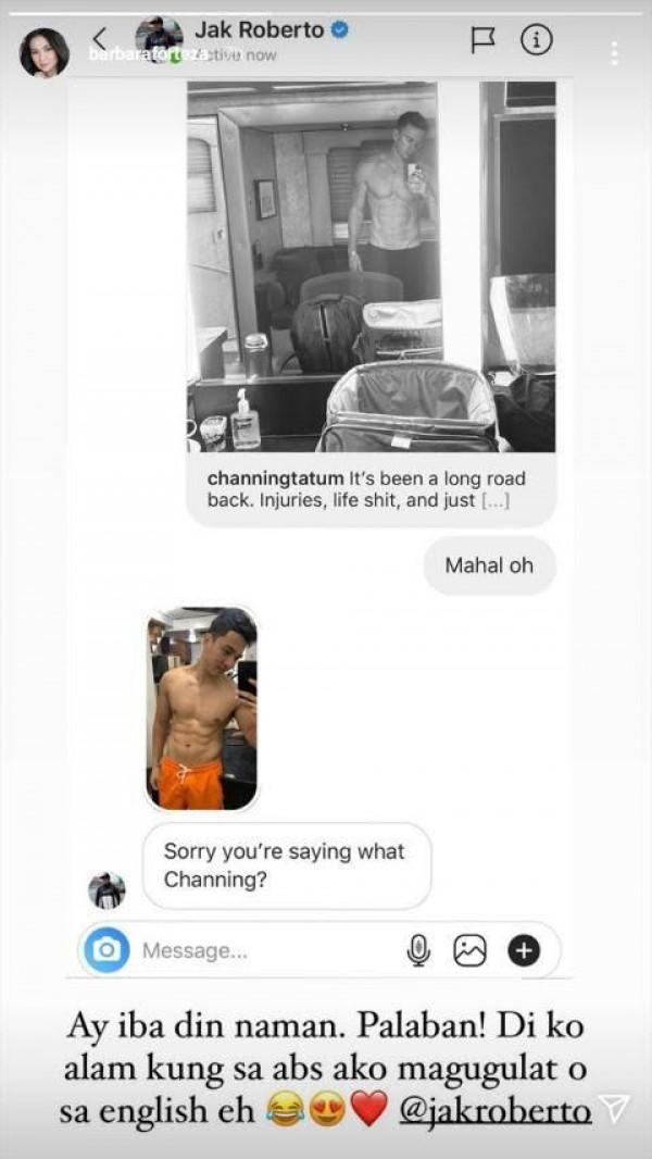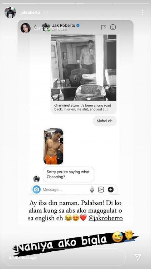Sa Instagram Story, ipinakita ni Barbie Forteza ang kaniyang personal message kay Jak na nagpapakita ng kanyang pagkamangha sa abs ng Hollywood actor na si Channing Tatum.