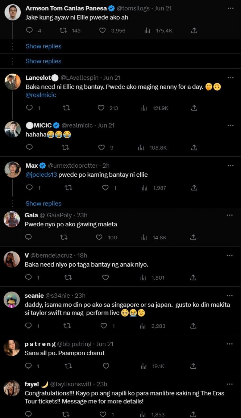 Meanwhile, many of his followers were amused by Jake and Ellie's conversation and replied to the actor's Twitter post. Some of them joked about going with him in case Ellie is not interested, while others offered to be a nanny for the celebrity kid so they could also attend to Taylor's concert.