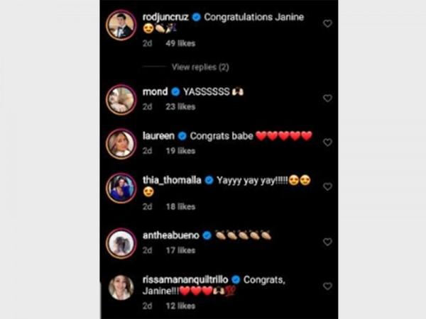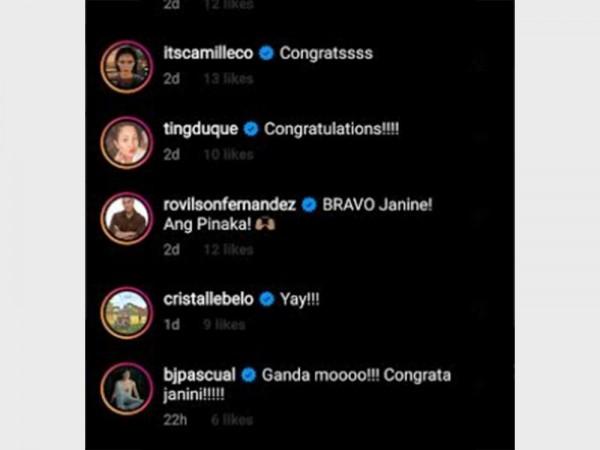 Several celebrities congratulated Janine on her latest feat, including Rodjun Cruz, Raymond Gutierrez, and lifestyle vloggers Laureen Uy and Camille Co.