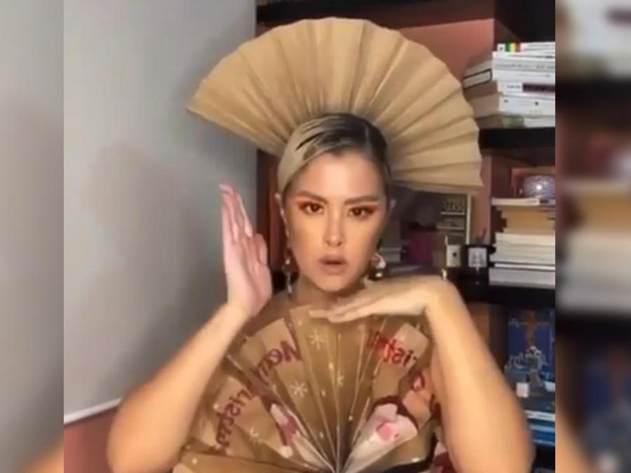 Since she has a lot of time in her hands, the celebrity daughter went all out with her full-drag production--clad in dresses glued and sewed with household items such as books, paper bags, and garbage bags.