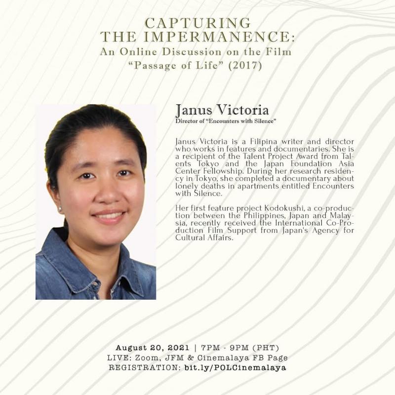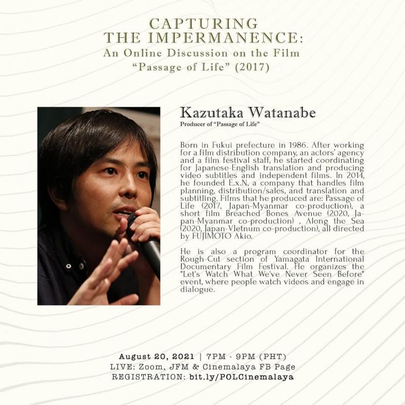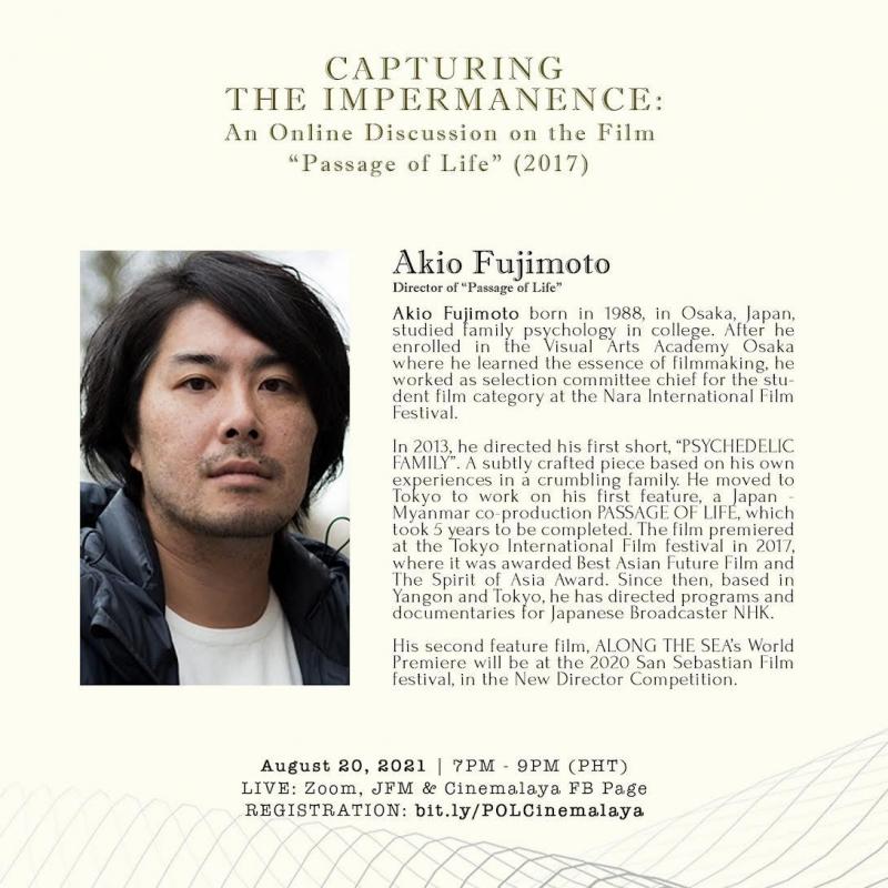Along with director Akio Fujimoto, the online live discussion will also be lead by Kazutaka Watanabe, producer of Passage of Life and Janus Victoria, a Filipino writer and director who works in features and documentaries.