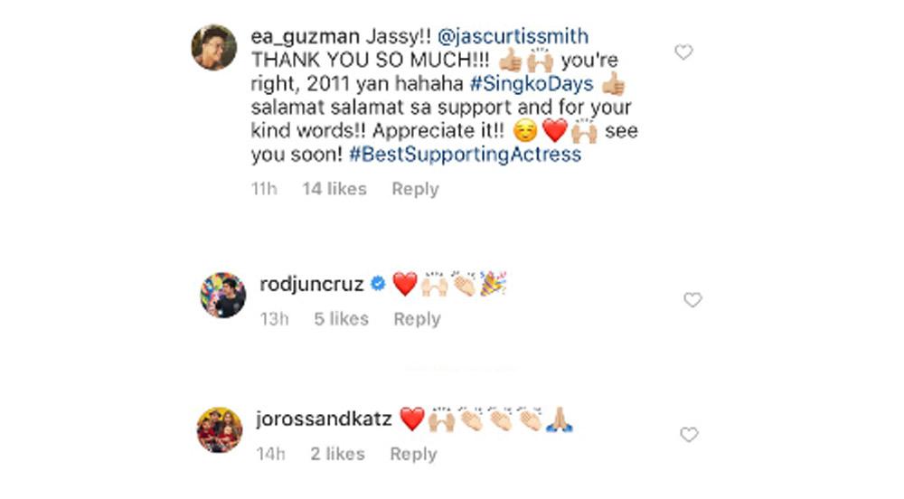 She also posted on Instagram that the Kapuso heartthrob is deserving of the Best Supporting Actor award.