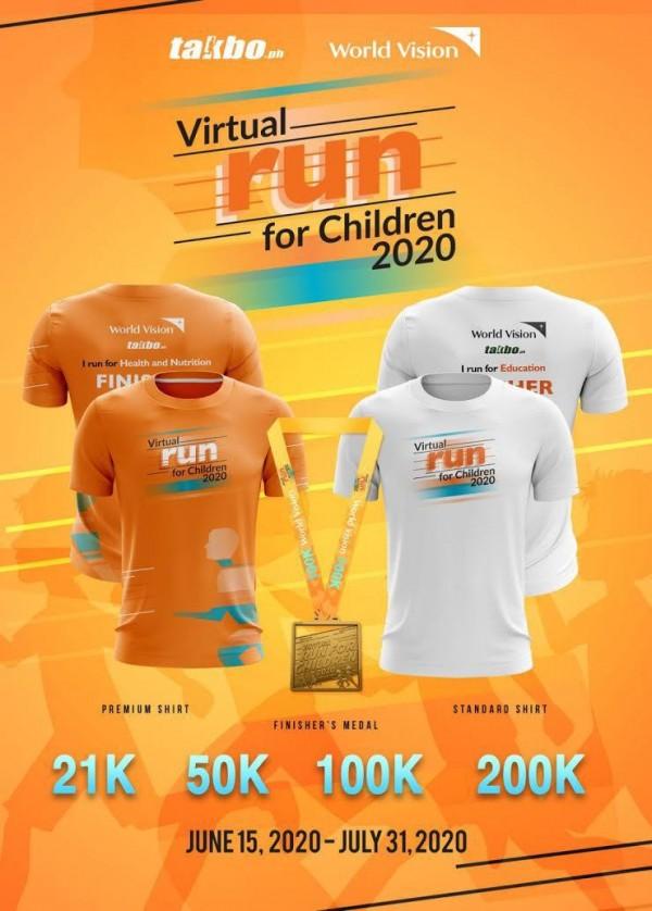 Plus, participants can run anytime and anywhere from June 15 up to July 31. And once they've reached their target mileage, they will get a World Vision Virtual Run for Children Finisher Shirt, a Finisher Medal, and an E-certificate.